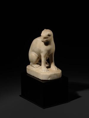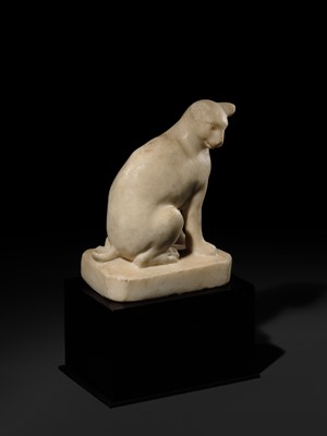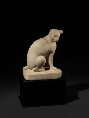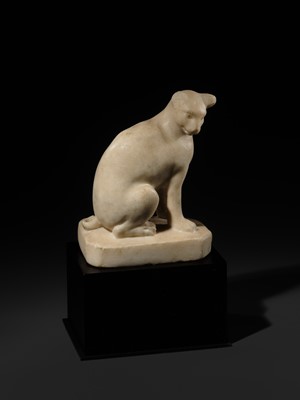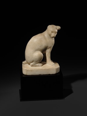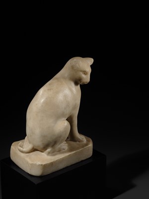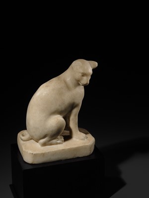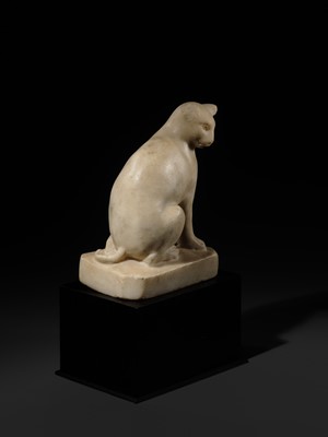 A RARE MARBLE FIGURE OF A SEATED CAT, PTOLEMAIC TO ROMAN PERIOD, CIRCA 332 BC - 1ST CENTURY BC