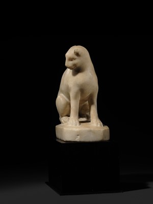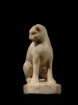 Expert’s Note: Marble was an exceedingly rare material for Egyptian sculpture, as it was imported rather than locally quarried. A small group of marble and limestone cats, several now in the British Museum and dated c. 332–200 BC, has been attributed to a single workshop. Petrie identified the group as originating from the Bubasteion at Naukratis (Naukratis Excavations, 1884–1886; Arts and Crafts of Ancient Egypt, 1909). The present figure, sharing the same rare material, scale, and modeling, was likely produced within this context of specialized Hellenistic craftsmanship in Egypt.