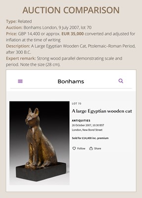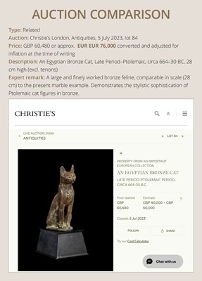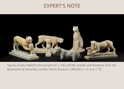 Expert remark: A large and finely worked bronze feline, comparable in scale (28 cm) to the present marble example. Demonstrates the stylistic sophistication of Ptolemaic cat figures in bronze.