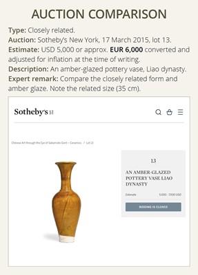 Expert remark: Compare the closely related form and amber glaze. Note the related size (35 cm).